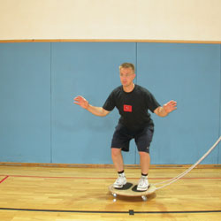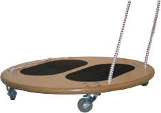 Der Wagen ist geeignet für die Erregung von Translationsstörungen der Gleichgewichtslage. In der Regel wird er im Paar gebraucht, wobei der Übende das Gleichgewicht versucht zu halten, während sein Partner durch Ziehen kurze schlagartige Bewegungen des Wagens hervorruft. Der Wagen kann selbständig oder in Kombination mit anderen Tone-Boards Übungsmitteln gebraucht werden, was unzählige Möglichkeiten für die Steigerung der Anforderungsstufe des Trainings bietet. |